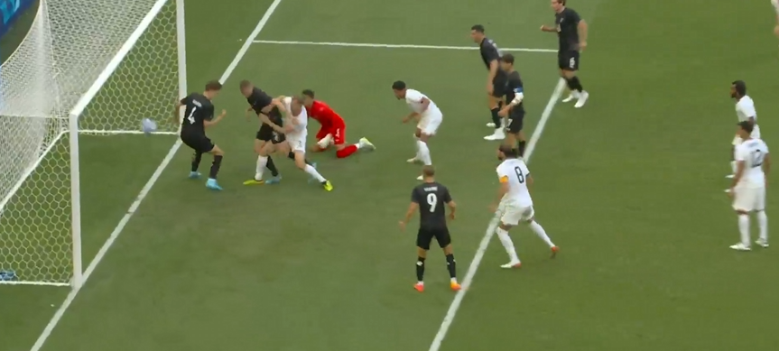 比赛第6分钟,哈利勒突入禁区被放倒。新西兰后卫在禁区内犯规,被主裁判果断判罚点球。米哈洛维奇主罚点球,骗过门将破门。美国国奥1-0领先新西兰国奥。
