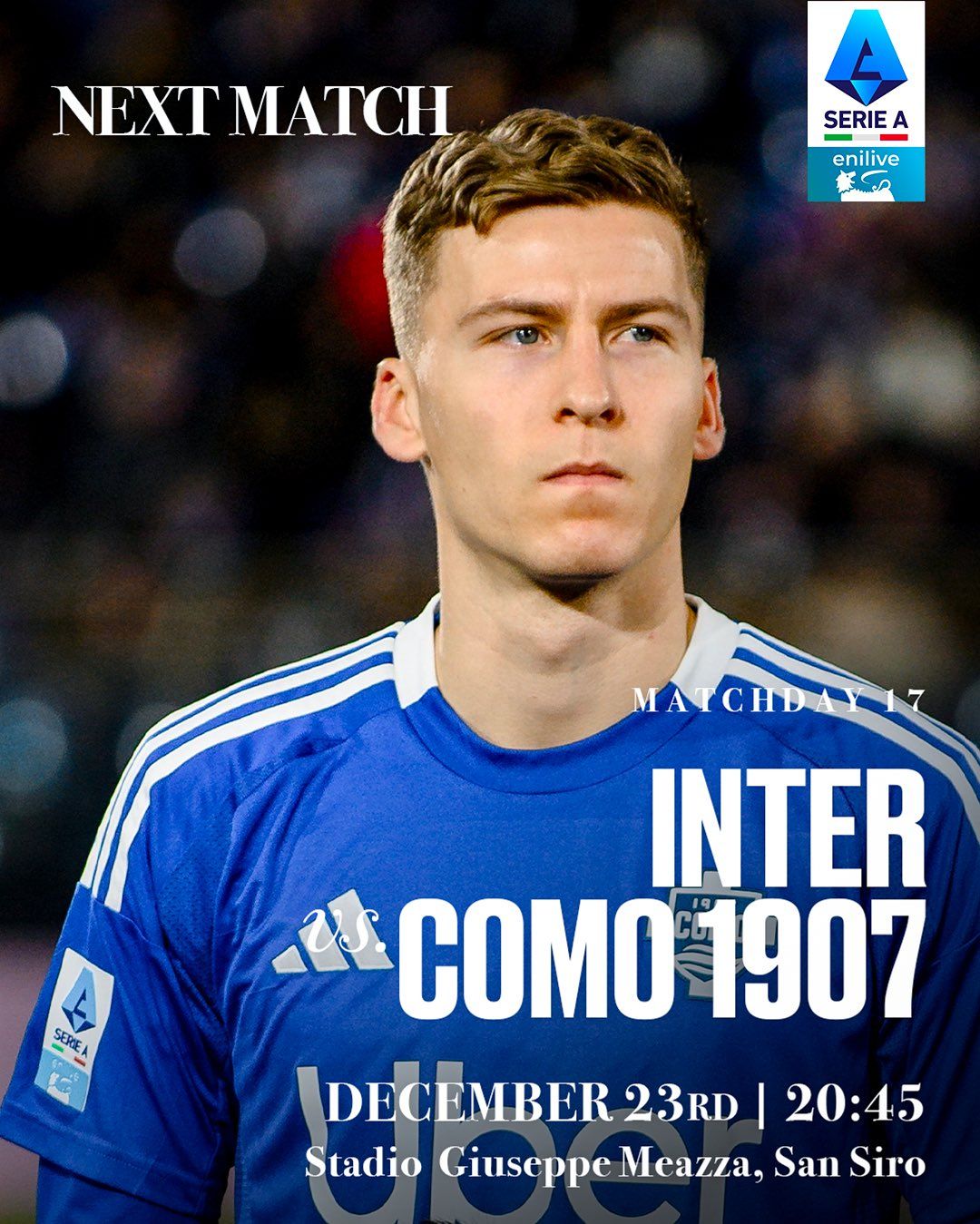 北京时间12月24日凌晨3:45,2024/25赛季意甲联赛第17轮最后一场比赛,国际米兰将坐镇主场对垒科莫。这场比赛是两支球队在2024年的倒数第二场比赛,一场胜利是双方不约而同的念想。
