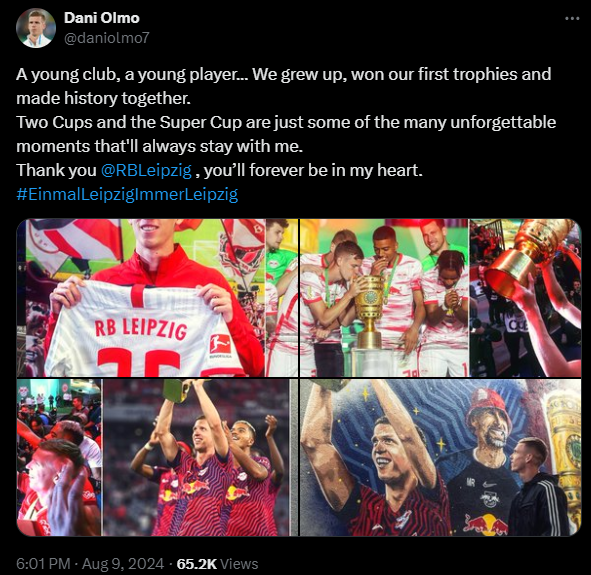 尽管还未官宣,但奥尔莫先行向莱比锡球迷们做出了深情的告别。